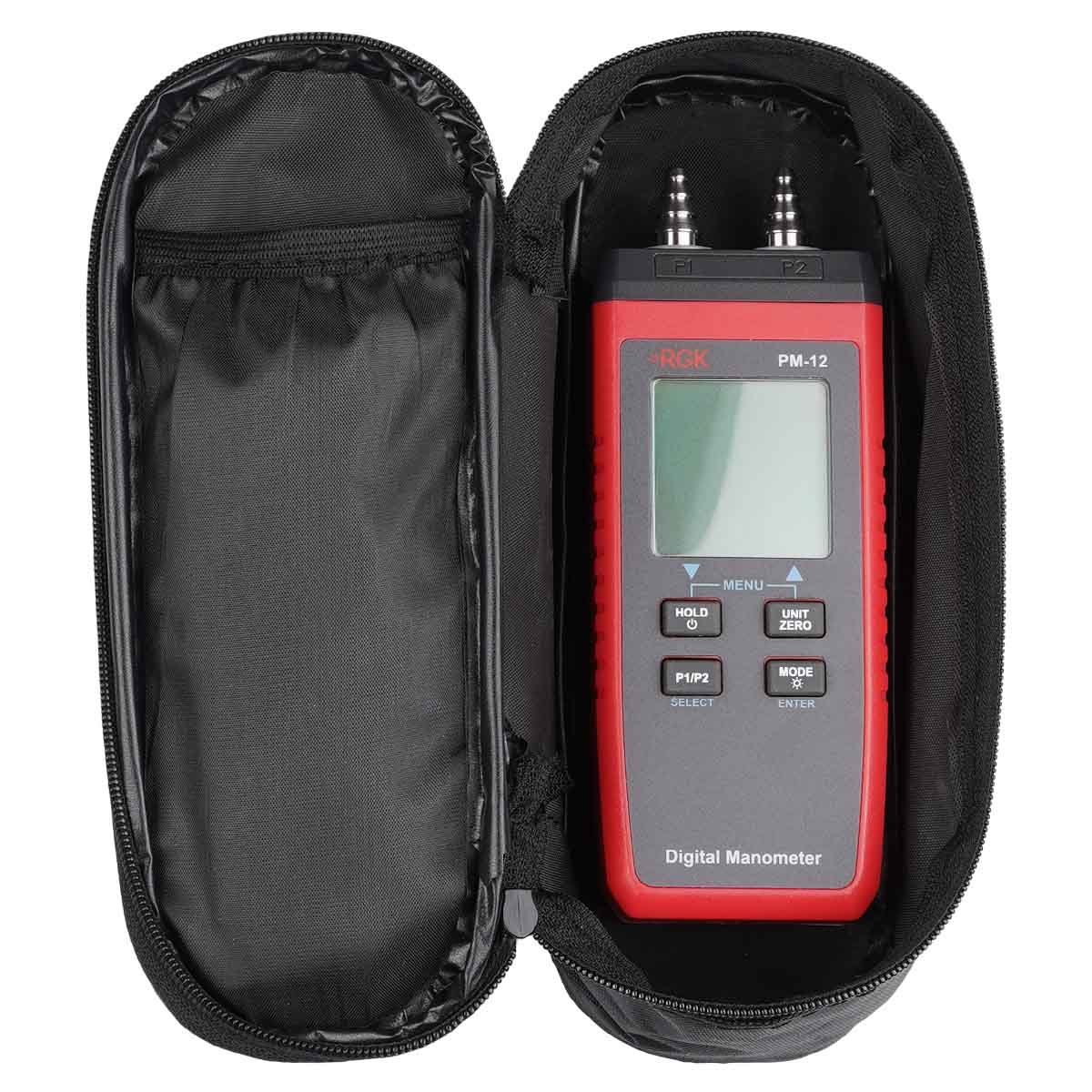 Цифровой манометр RGK PM-12 - двухканальный прибор для измерения манометрического и дифференциального давления, который часто используется при настройке и пусконаладке систем вентиляции, отопления и любых других, где есть движение воздушных масс.